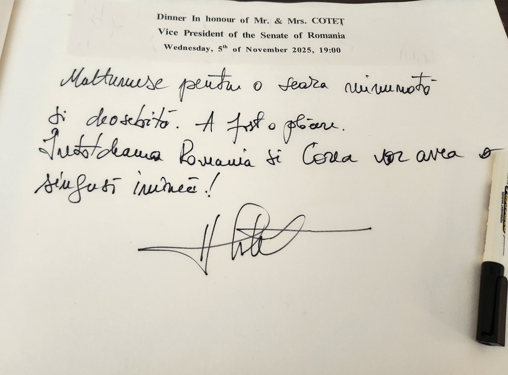 임갑수 대사 내외는 11.5(수) 미하이 코테츠(Mihai COTEŢ) 상원 부의장 내외를 관저에 초청하여 만찬을 함께 하고, 양국 협력 강화 방안을 논의했습니다.